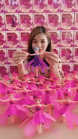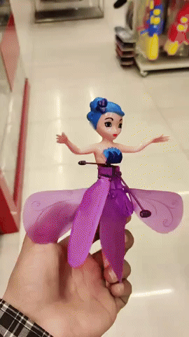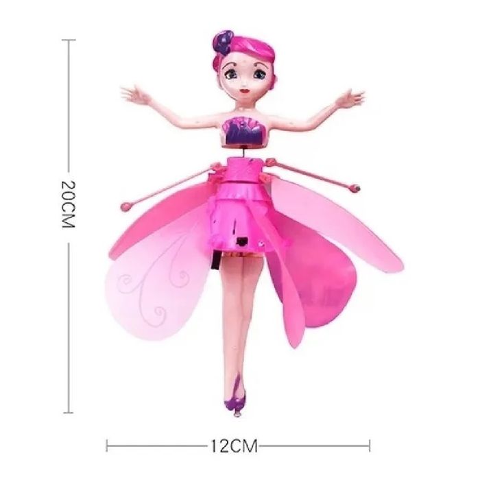Nuestra Muñeca Hada Voladora con sensor de movimiento y carga USB encanta a niñas y grandes: se eleva al detectar tu mano, gira en el aire y brilla con luces de colores 🌈.