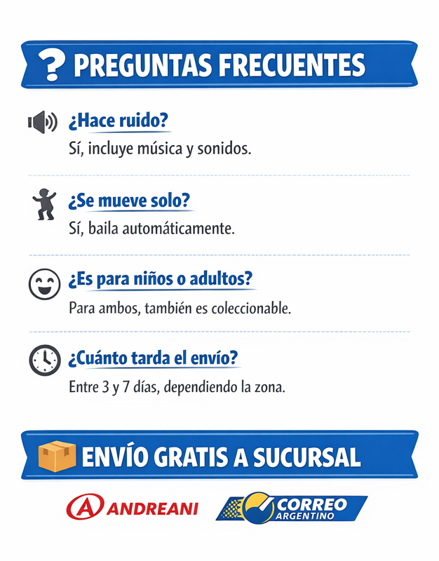 Todos los pedidos se envían en un plazo de 24 a 48 horas hábiles mediante ANDREANI. El plazo de entrega suele ser de 2 a 4 días hábiles, sin embargo, puede recibir sus artículos antes.